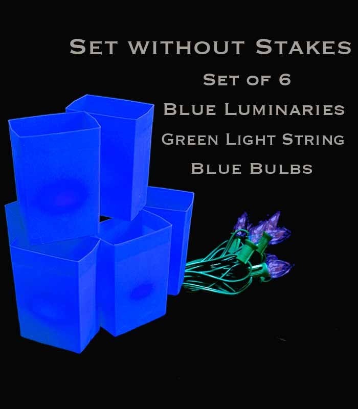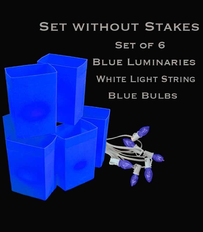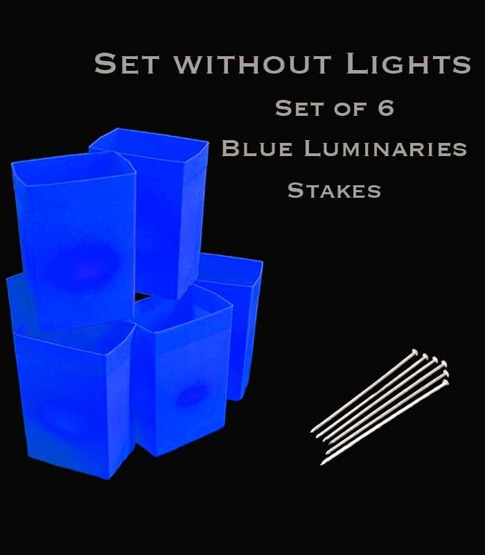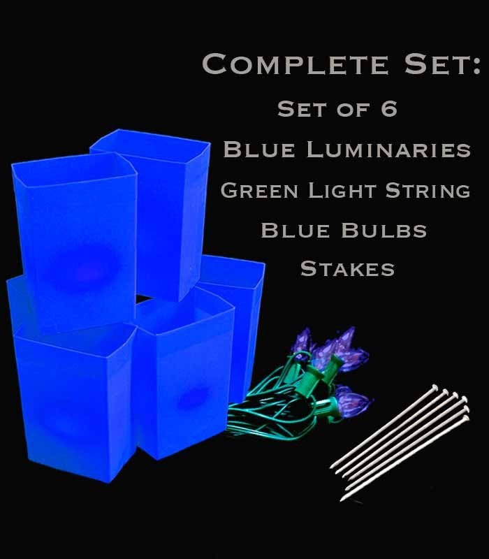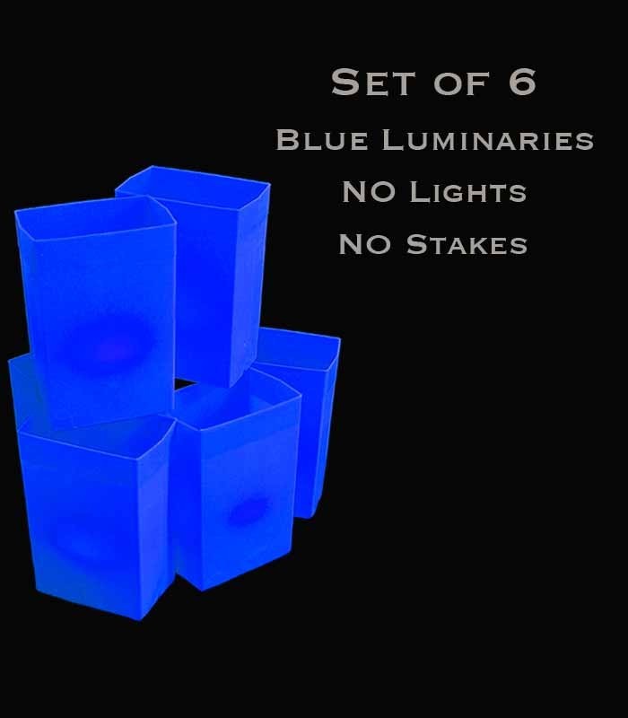 6 Blue Durable, Hard-Plastic Luminaries. Select your lighting source to complete your set.
