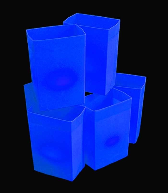1. No Light Source - Our luminarias are designed for general use. If you have your own tealights, candles or C7 light strings, you can use them with our luminaries. However, with the saturated color of our blue luminaries, we highly advise purchasing our custom light string and bulbs which are bright and tuned for our blue luminaries.