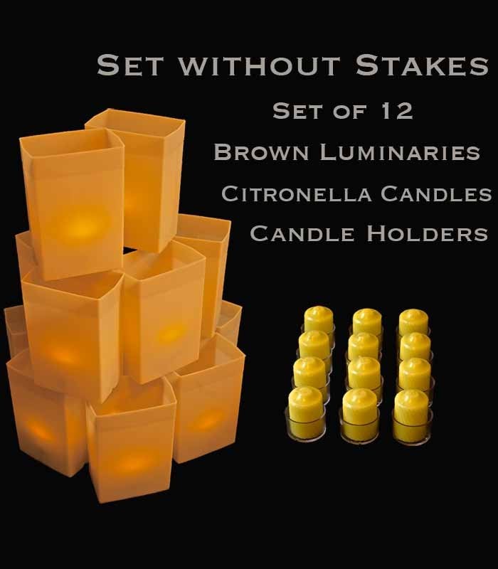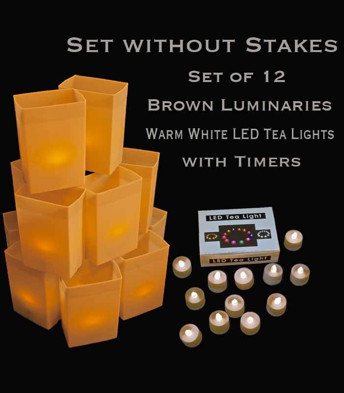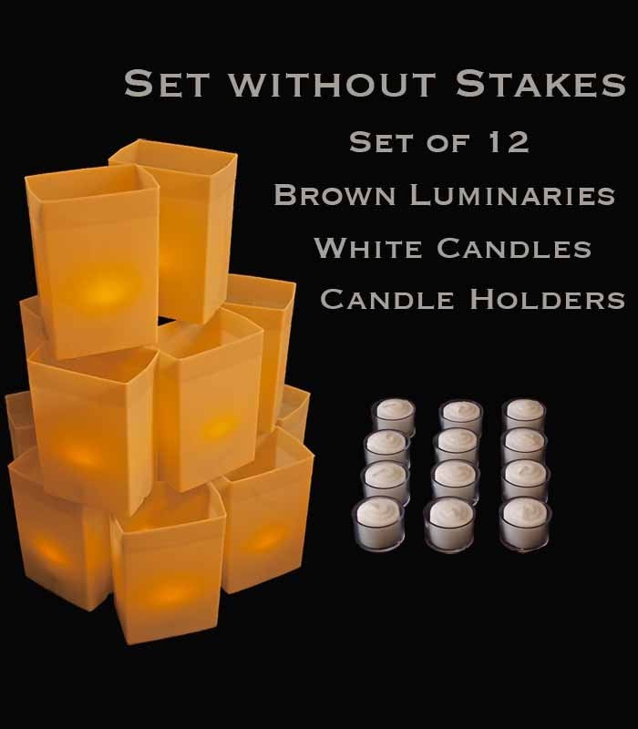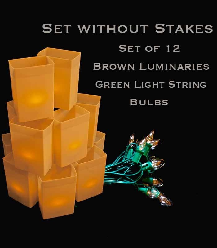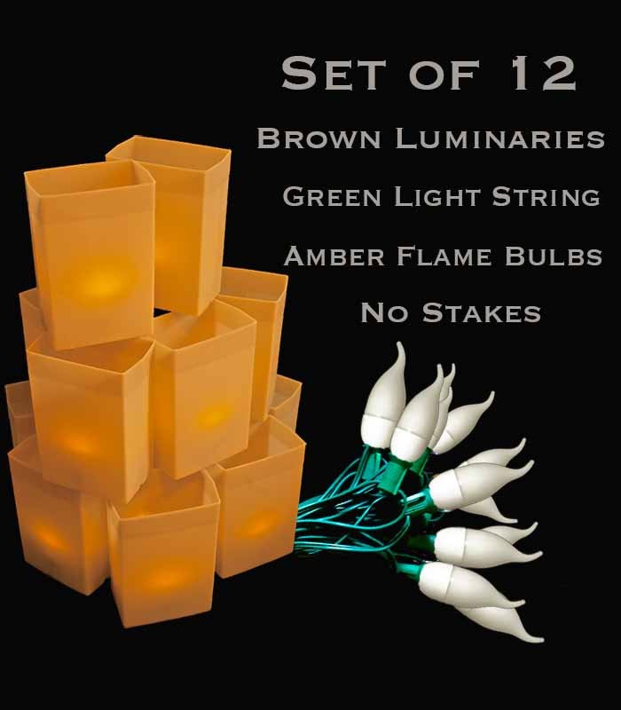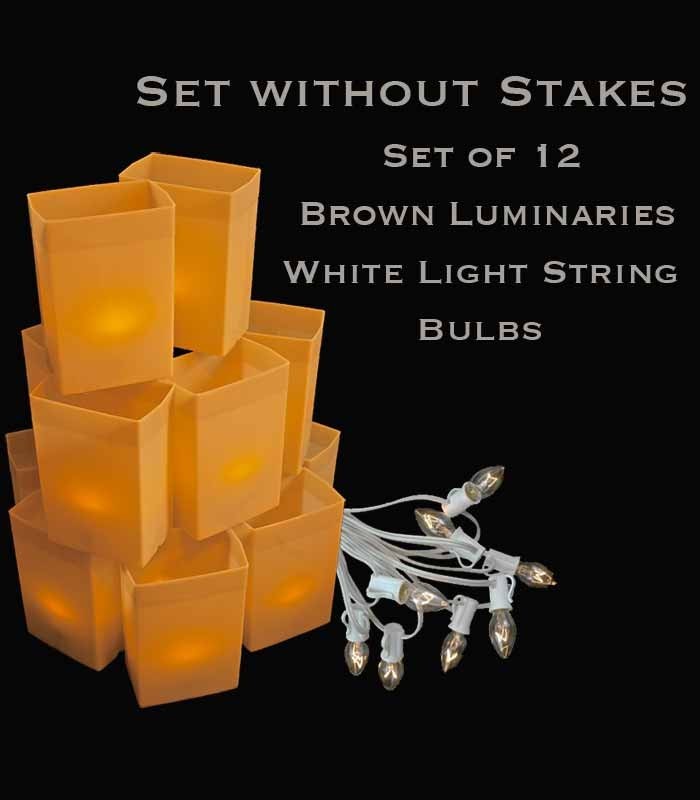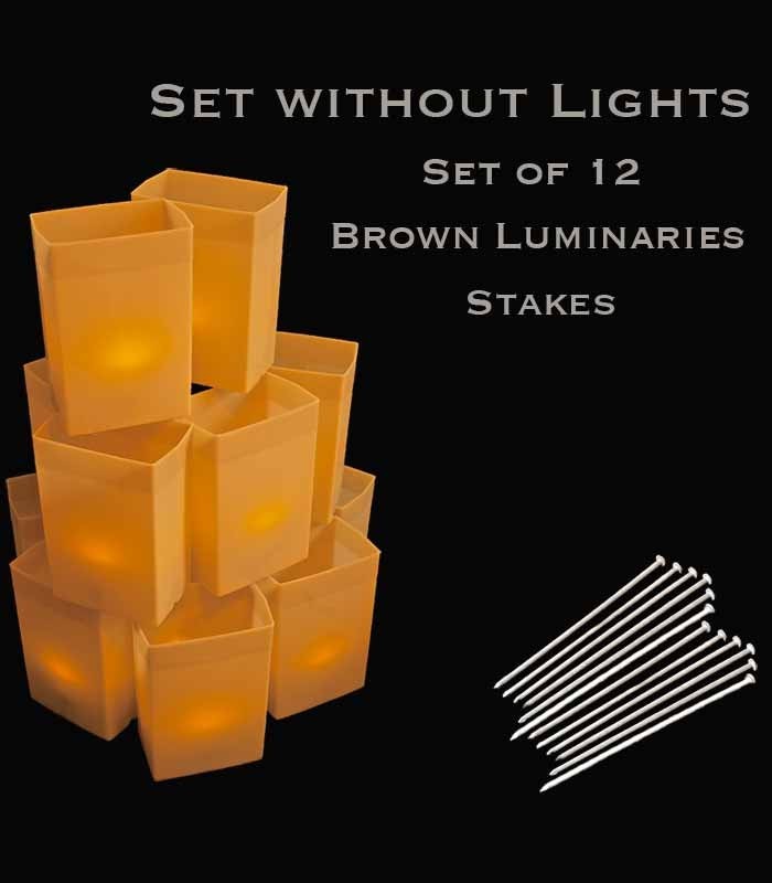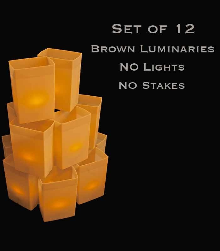 12 Brown Solid, Hard-Plastic Luminaries. Select your lighting source to complete your set.