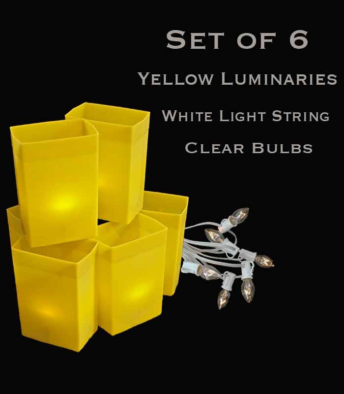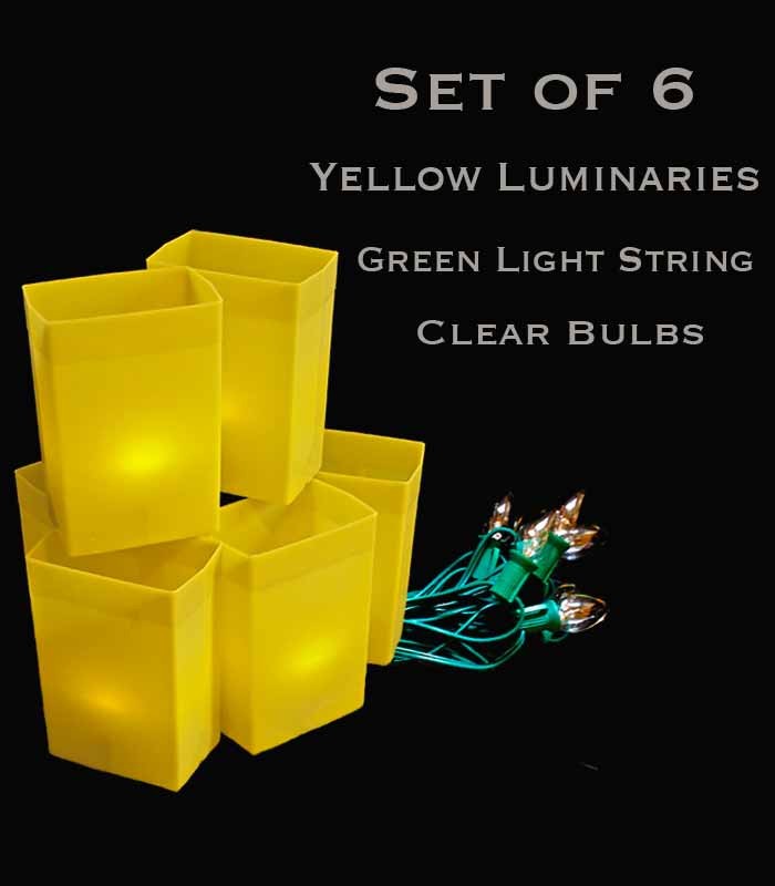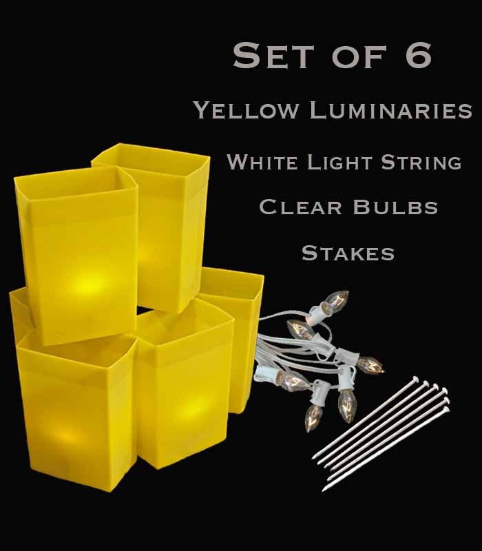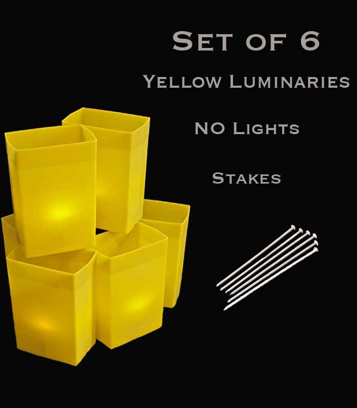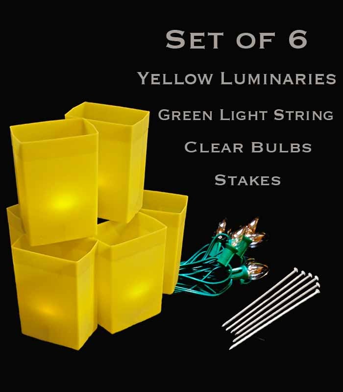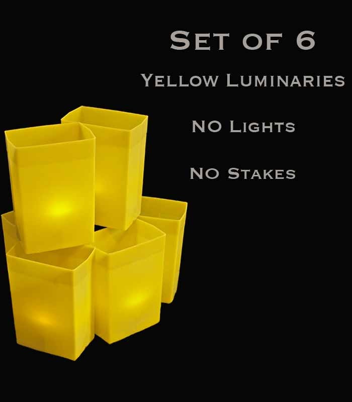 6 Yellow Durable, Hard-Plastic Luminaries. Select your lighting source to complete your set.