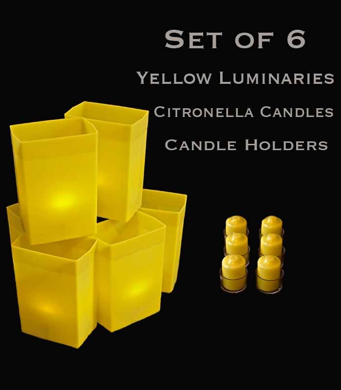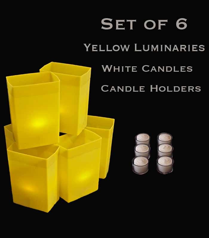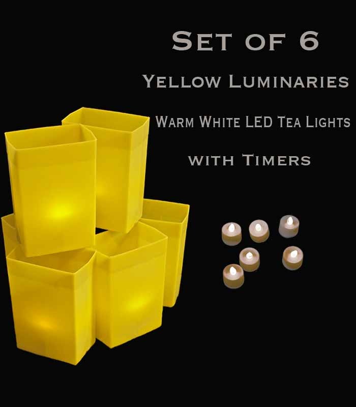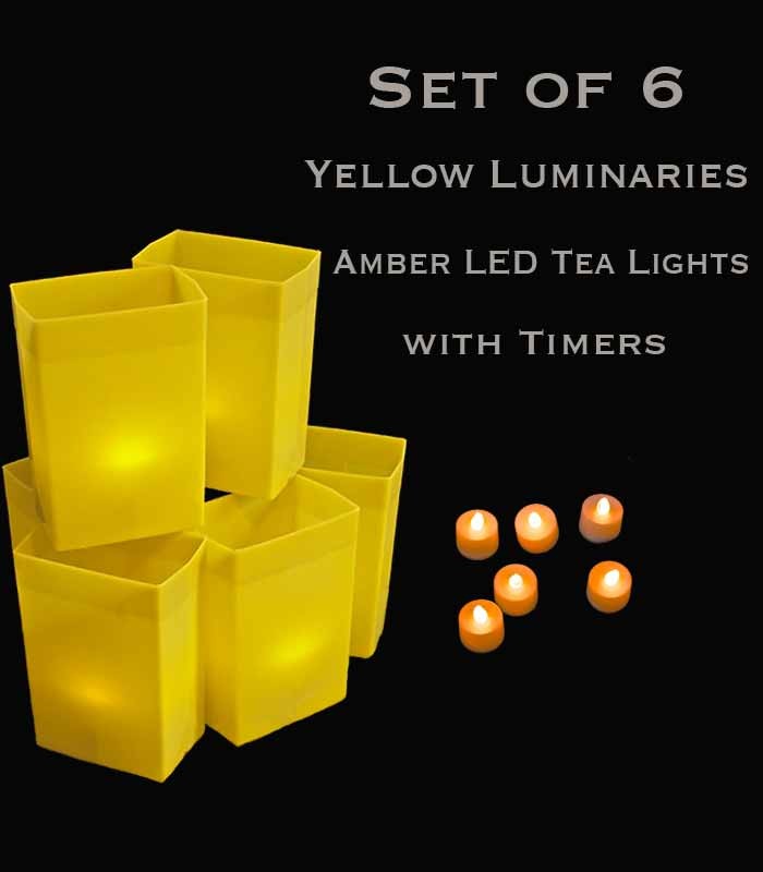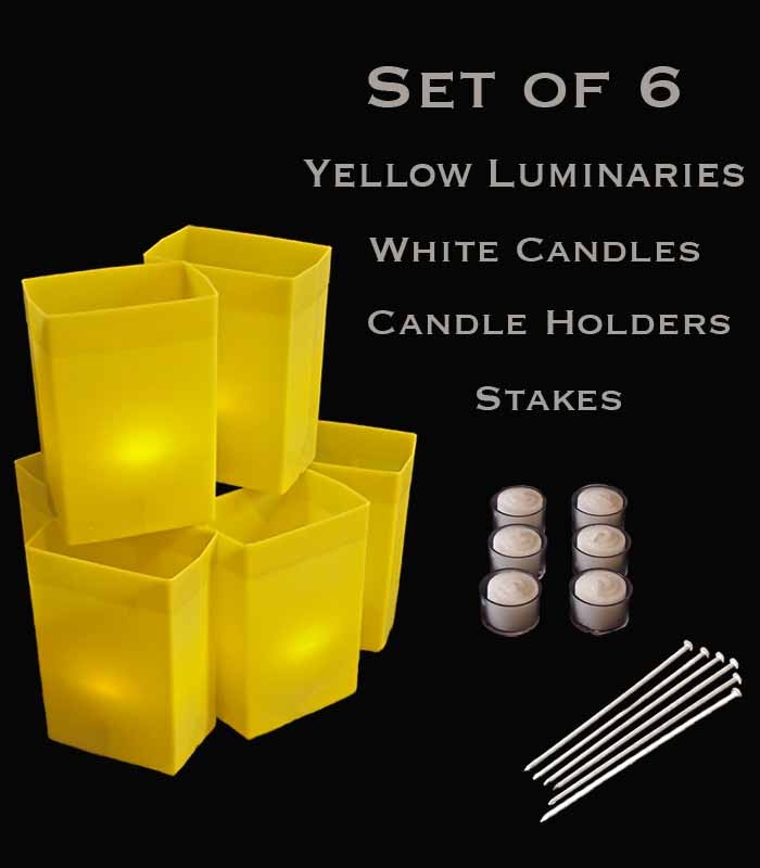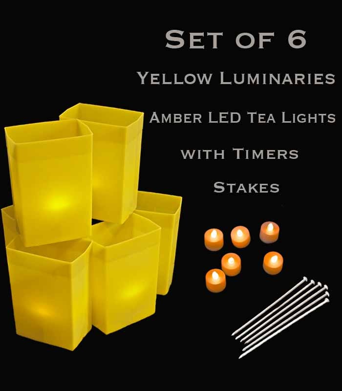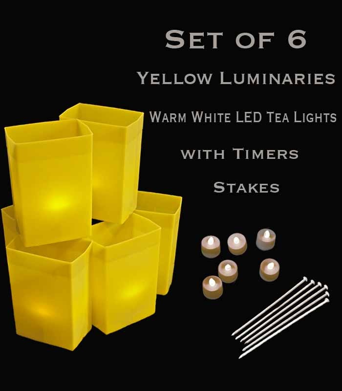 6 Yellow Durable, Hard-Plastic Luminaries. Select your lighting source to complete your set.