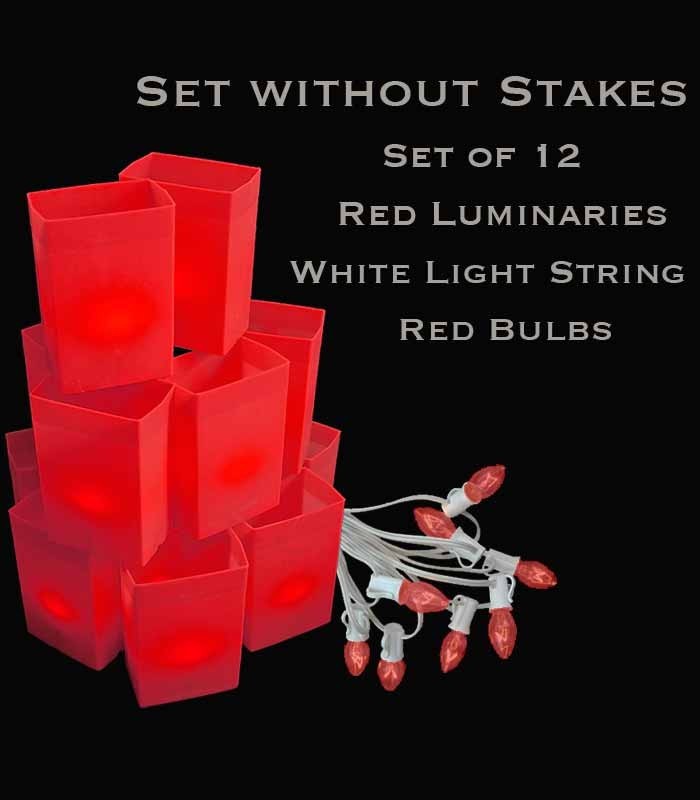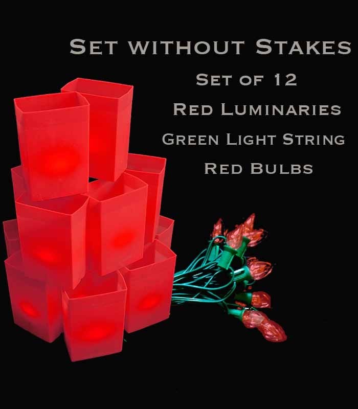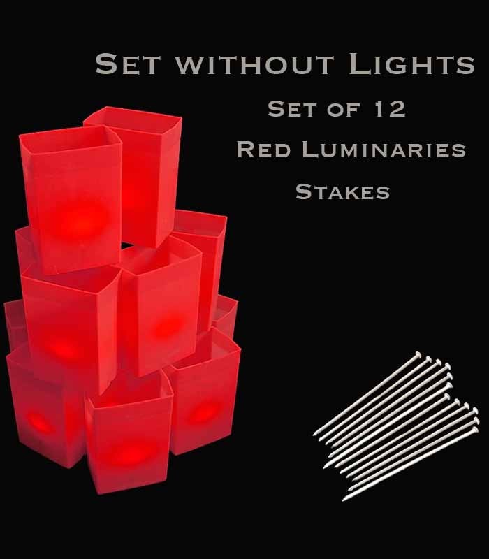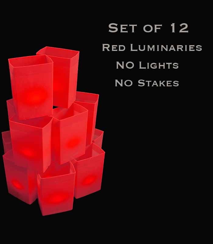 12 Red Solid, Hard-Plastic Luminaries. Select your lighting source to complete your set.