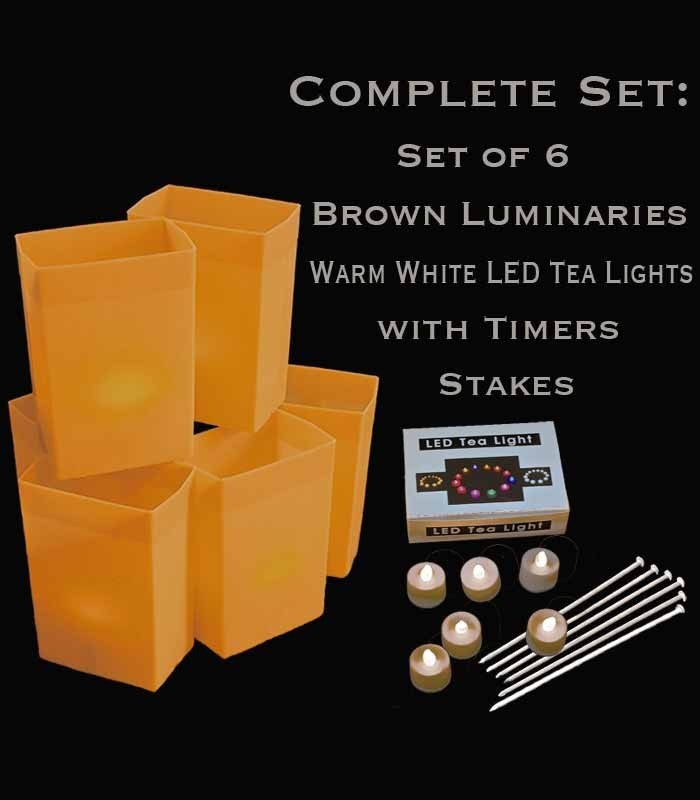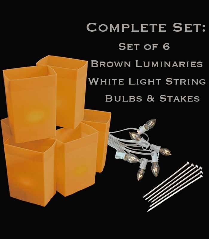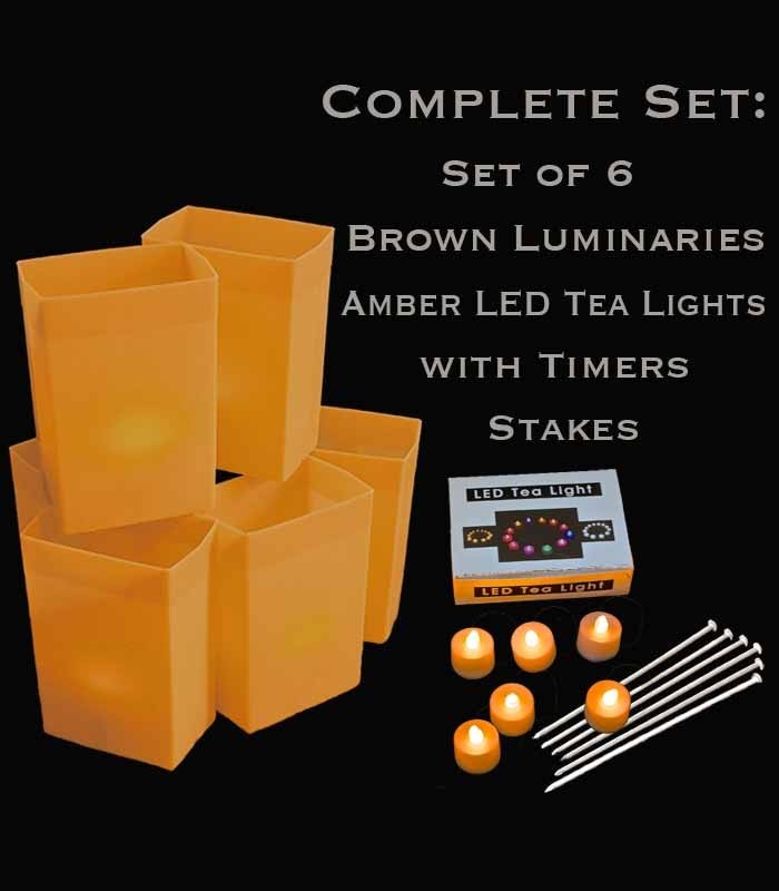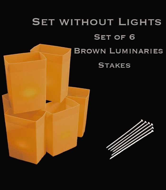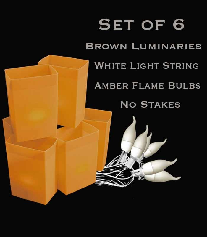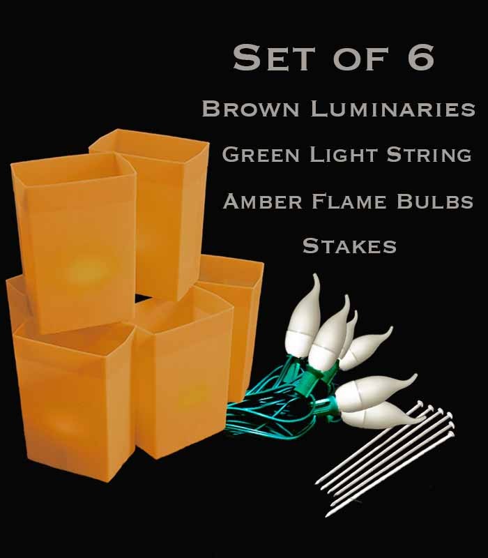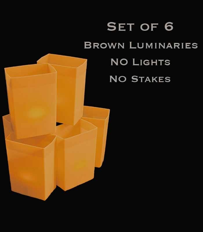 6 Brown Durable, Hard-Plastic Luminaries. Select your lighting source to complete your set.