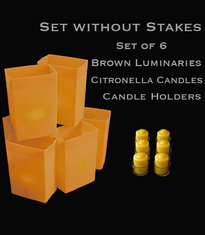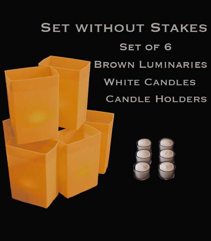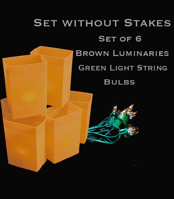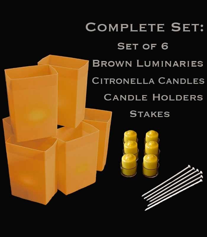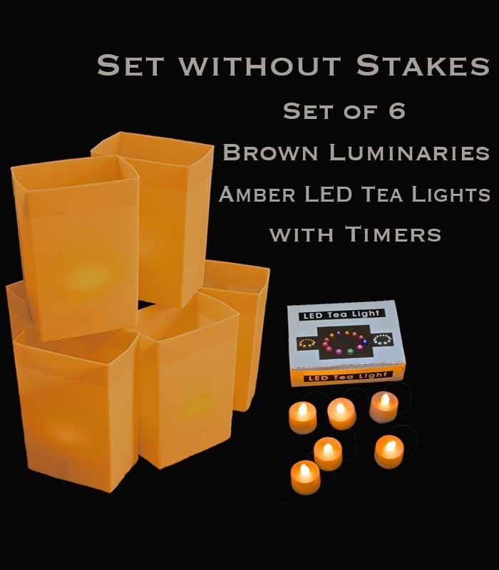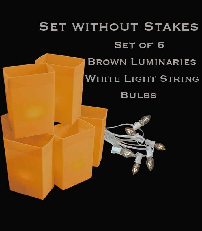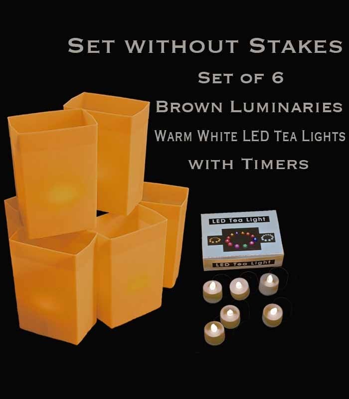 6 Brown Durable, Hard-Plastic Luminaries. Select your lighting source to complete your set.