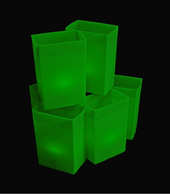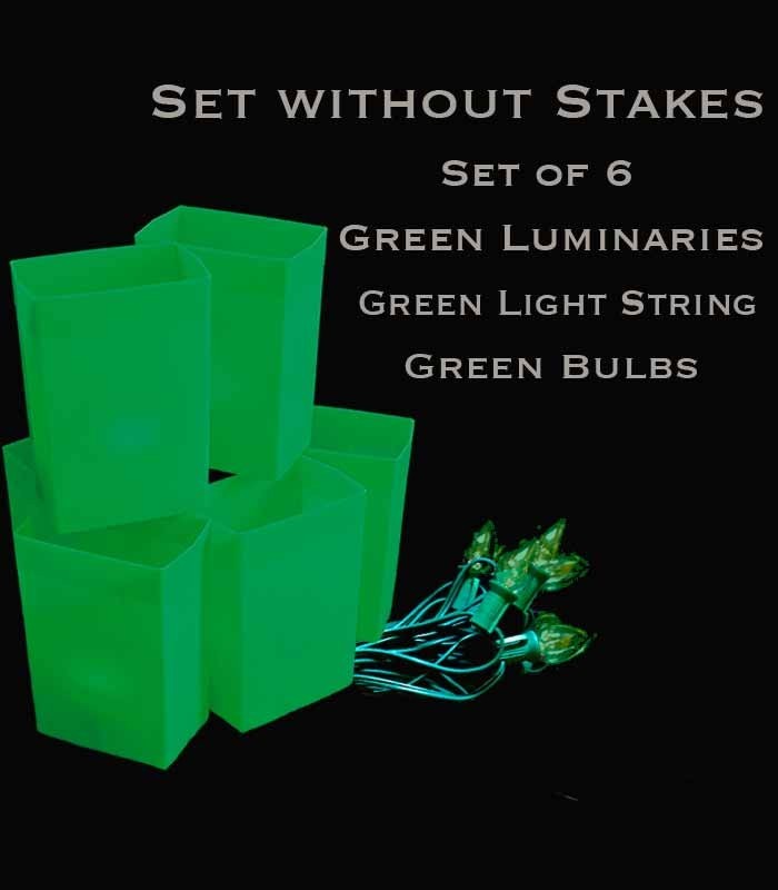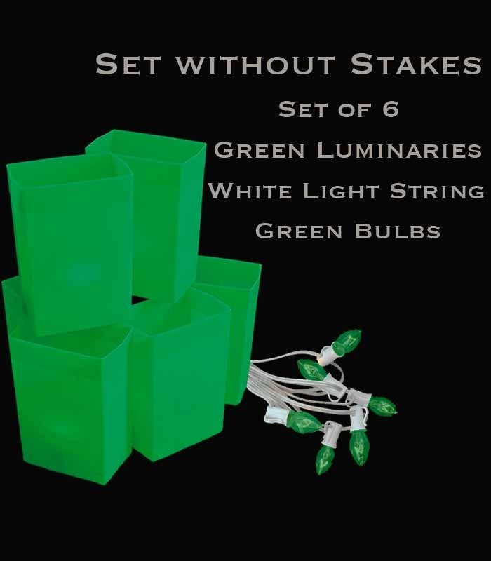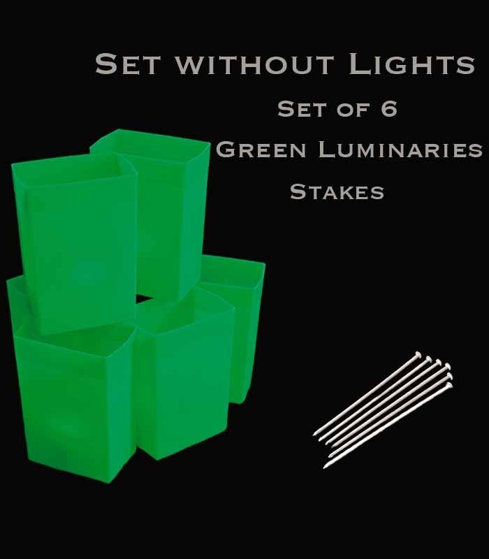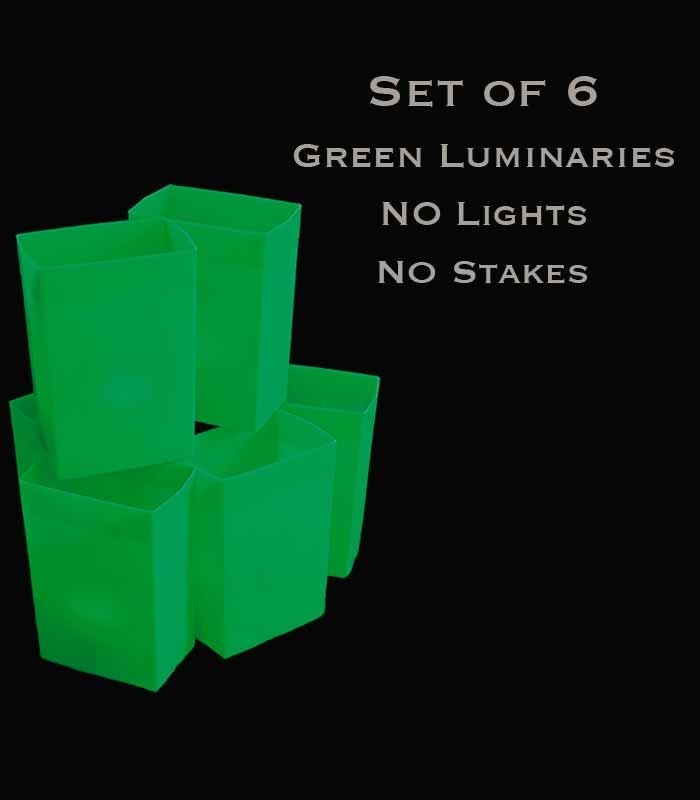 6 Green Durable, Hard-Plastic Luminaries. Select your lighting source to complete your set.