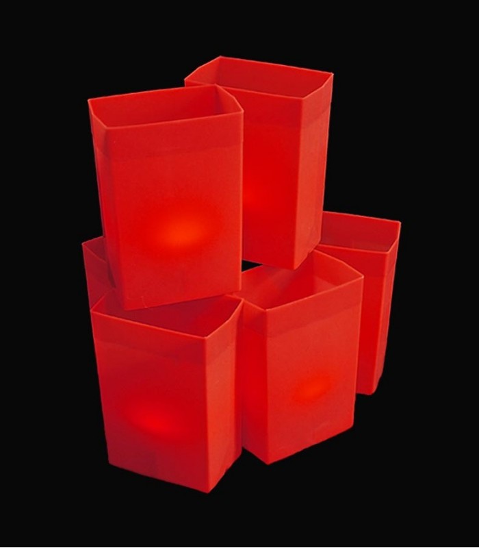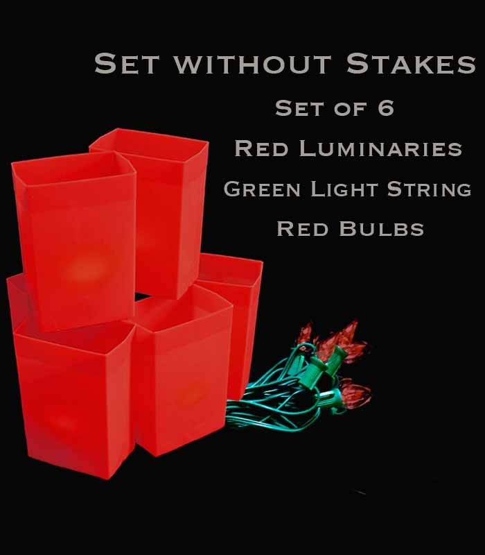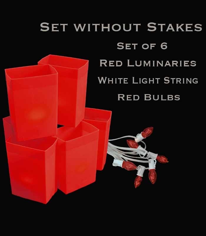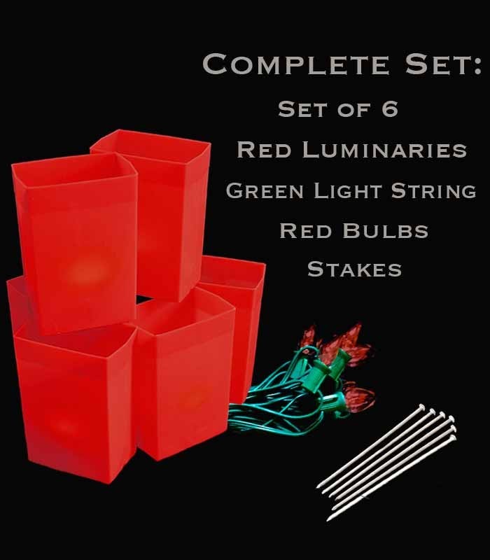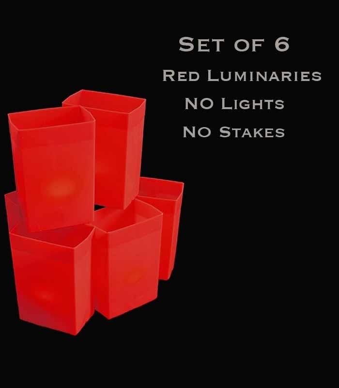 6 Red Durable, Hard-Plastic Luminaries. Select your lighting source to complete your set.