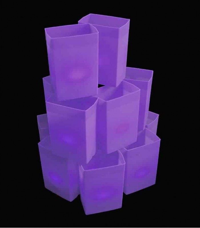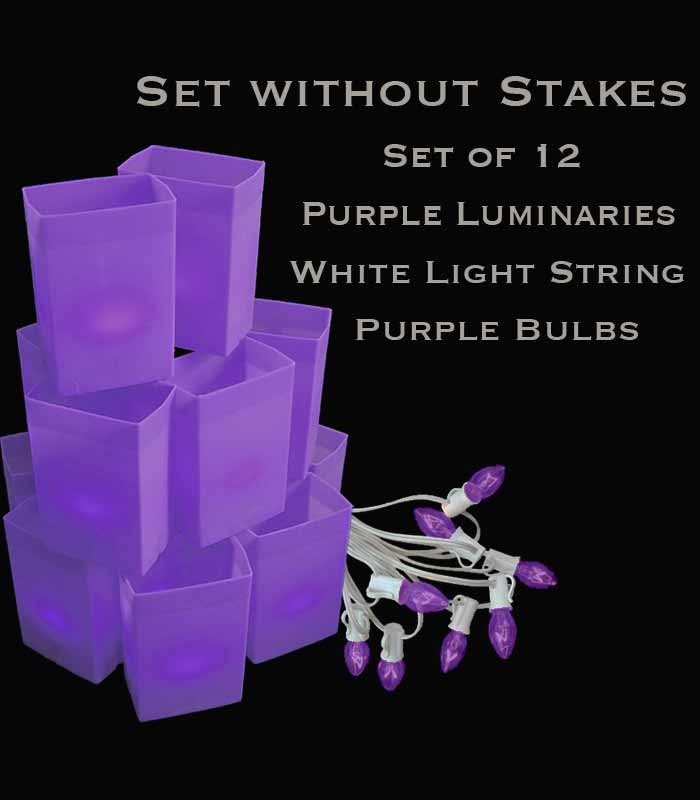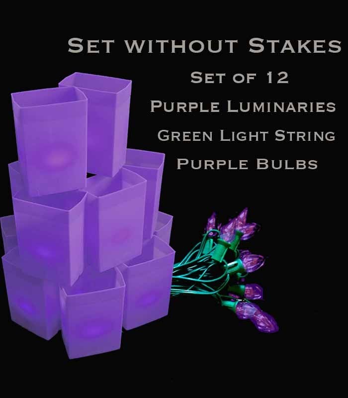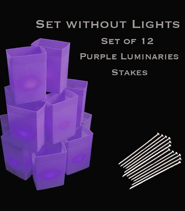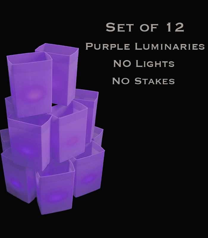 12 Purple Solid, Hard-Plastic Luminaries. Select your lighting source to complete your set.