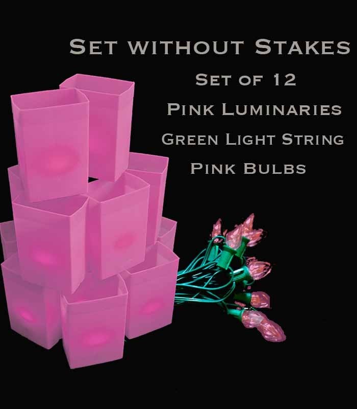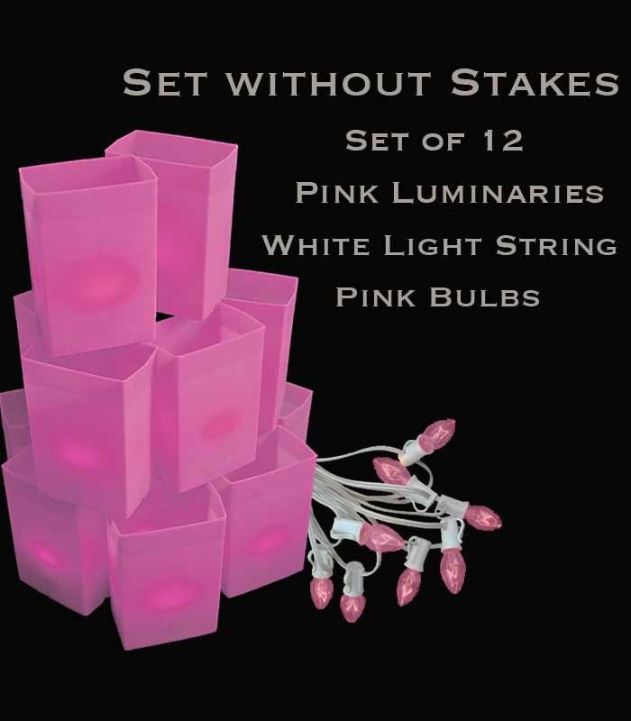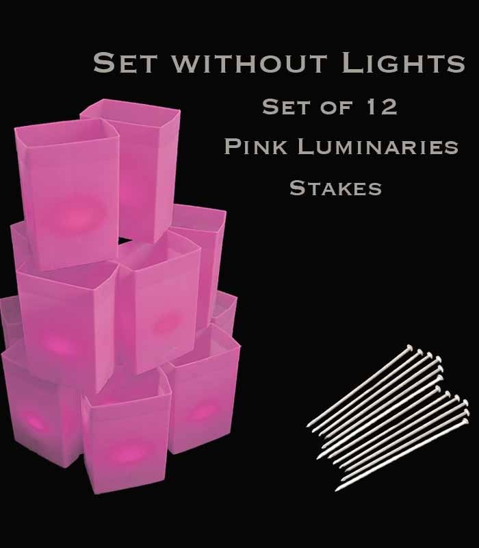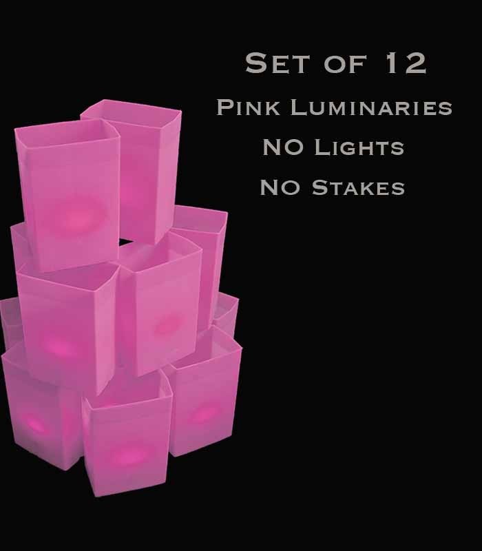12 Pink Solid, Hard-Plastic Luminaries. Select your lighting source to complete your set.