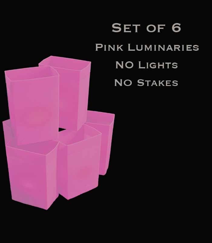 6 Pink Solid, Hard-Plastic Luminaries. Select your lighting source to complete your set.