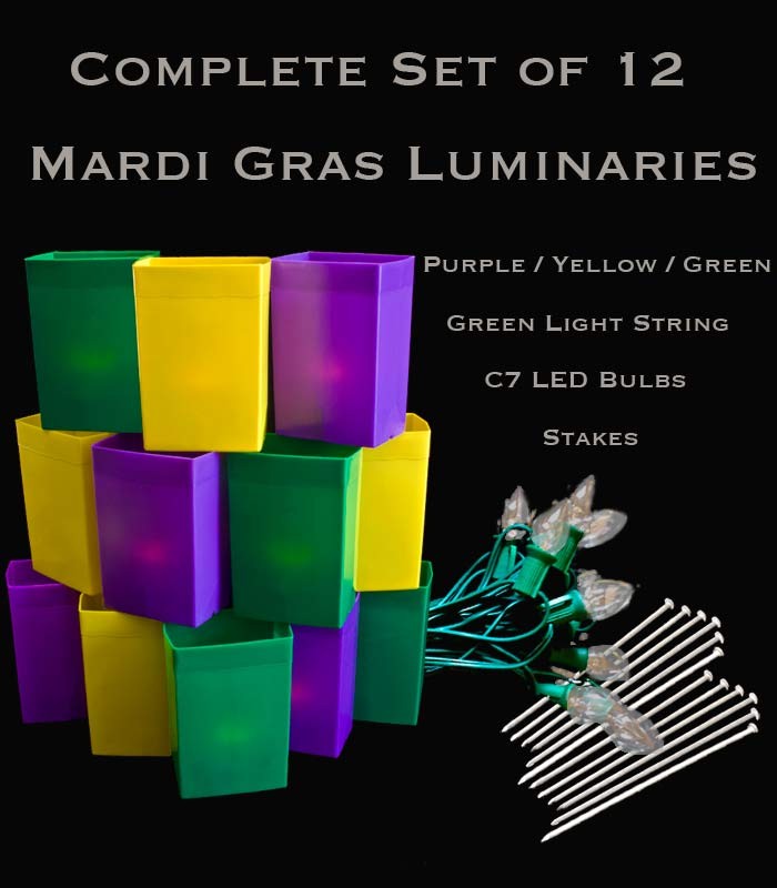 Luminary Color | Mardi Gras (purple, green, yellow) |
